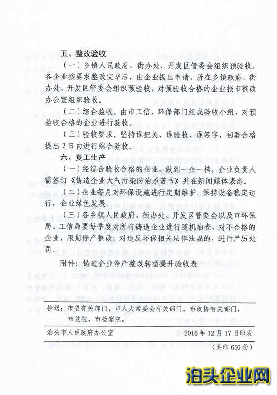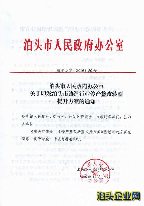 核心提示:泊頭市人民政府辦公室關(guān)于印發(fā)泊頭市鑄造行業(yè)停產(chǎn)整改轉(zhuǎn)型提升方案的通知